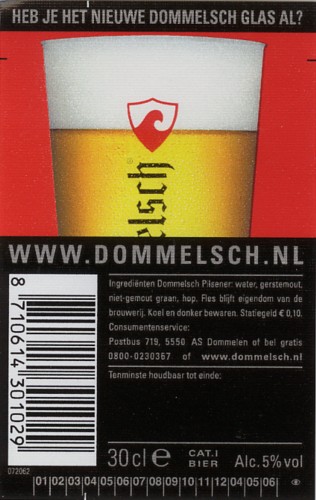 | Biernaam op etiket | Dommelsch Pilsener |