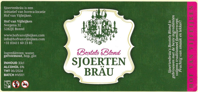 | Omschrijving | tht 06/2024 batch HV001 Voor Hof van Vijfeijken te Boxtel |