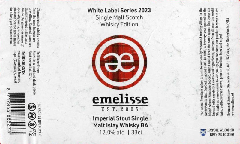 | Biernaam op etiket | White Label Imperial Stout Single Malt Islay Whisky BA |