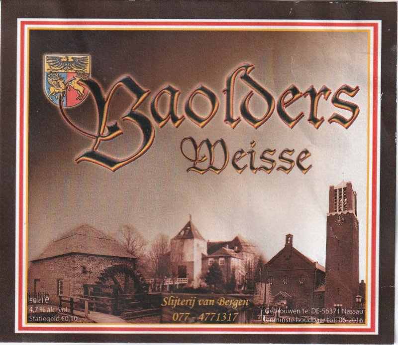 | Omschrijving | Slijterij van Bergen - Baarlo(Limburg) tht 06-2016 gebrouwen te DE-56371 Nassau |