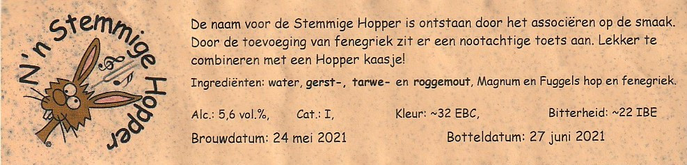| Biernaam op etiket | N'n Stemmige Hopper |