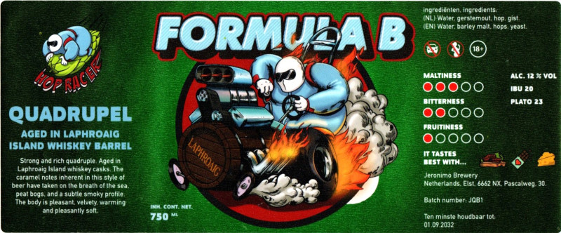 | Omschrijving | Merknaam van Jeronymo Aged in Laphroaig Island Whiskey Barrel tht 01-09-2032 batch JQB1 |
