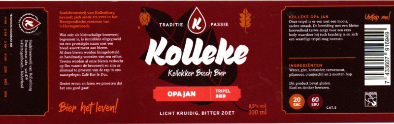 | Biernaam op etiket | Kolleke Opa Jan Tripel Bier |