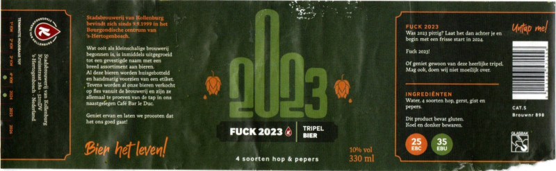 | Biernaam op etiket | 2023 - Fuck 2023 Tripel Bier |