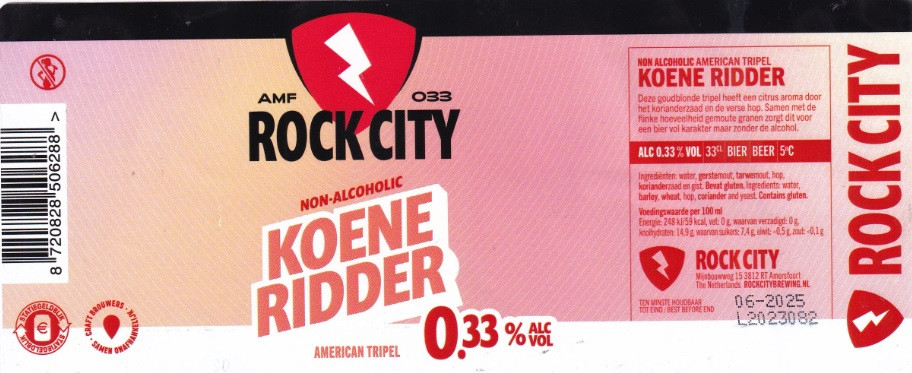 | Biernaam op etiket | Koene Ridder Non Alcoholic American Tripel |