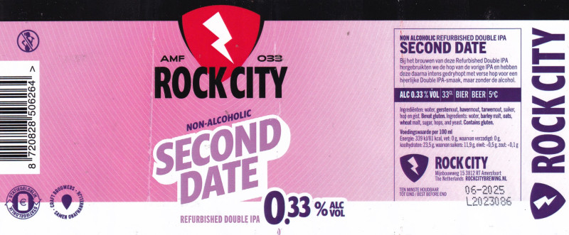 | Biernaam op etiket | Non-Alcoholic Second Date Refurbished Double IPA |