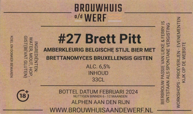 | Omschrijving | Amberkleurig Belgische stijl bier met brettanomyes Bruxellensis gisten botteldatum februari 2024 |