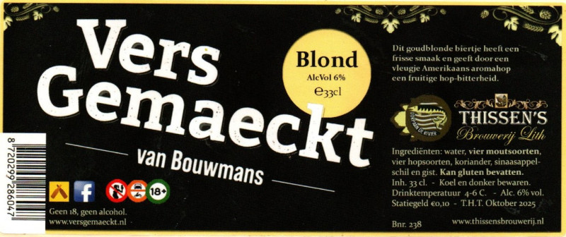 | Biernaam op etiket | Vers Gemaeckt Blond |