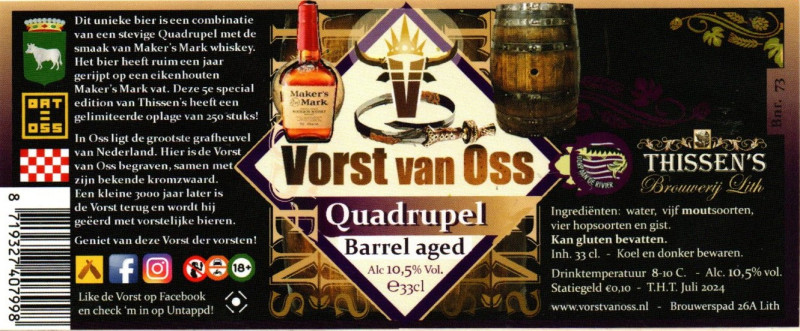 | Biernaam op etiket | Vorst van Oss Quadrupel Barrel Aged Maker's Mark |