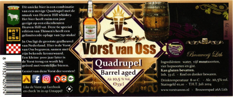| Biernaam op etiket | Vorst van Oss Quadrupel Barrel Aged Heaven Hill |
