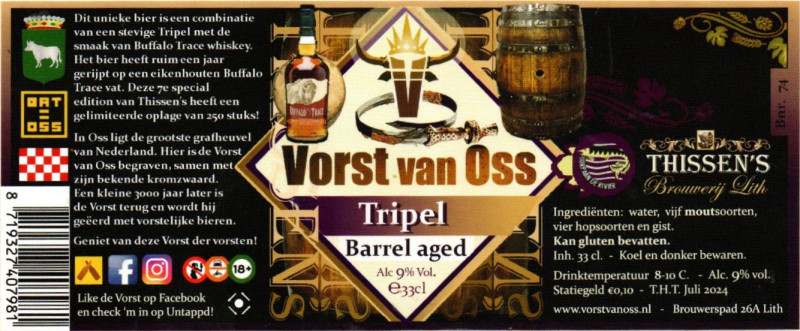 | Biernaam op etiket | Vorst van Oss Tripel Barrel Aged Buffalo Trace |