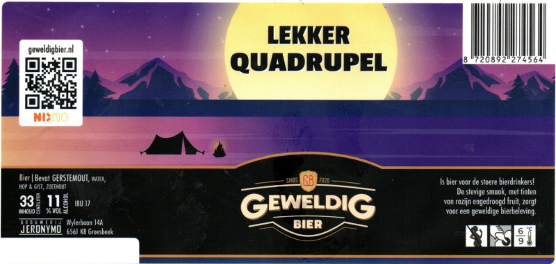 | Biernaam op etiket | Geweldig Bier Lekker Quadrupel |