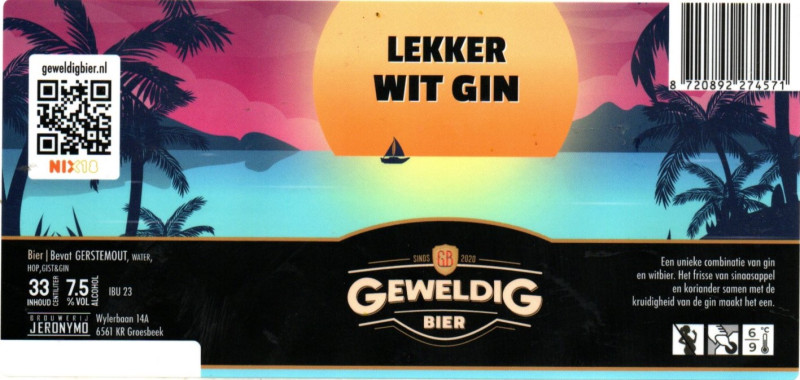| Biernaam op etiket | Geweldig Bier Lekker Wit Gin |