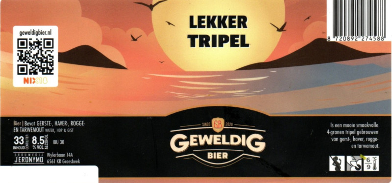 | Biernaam op etiket | Geweldig Bier Lekker Tripel |