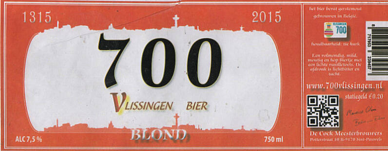 | Biernaam op etiket | 700 Vlissingen Bier Blond |