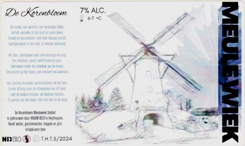 | Biernaam op etiket | De Korenbloem Meulewiek Dubbel |