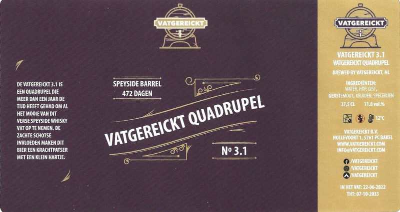 | Biernaam op etiket | Vatgereickt No 3.1 Quadrupel |