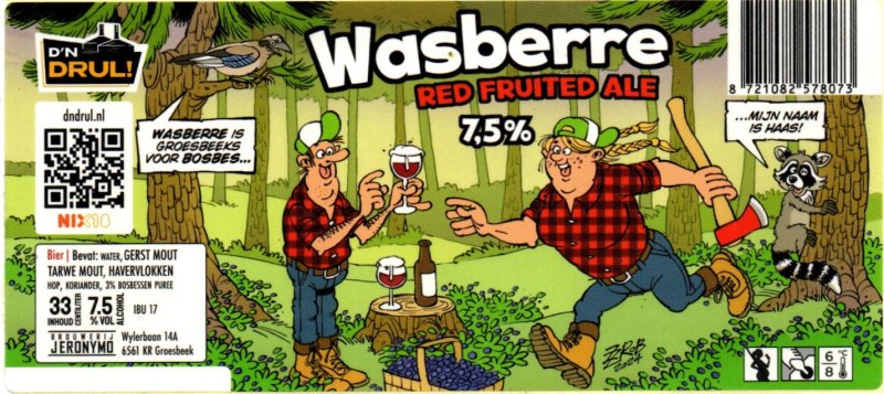 | Biernaam op etiket | D'n Drul - Wasberre Red Fruit Ale |