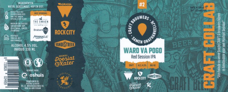 | Omschrijving | Craft Collab #2 Collab - Walhalla Craft Beer / Rock City Brewing / van de Streek / Poesiat & Kater / Gooische Bierbrouwerij |