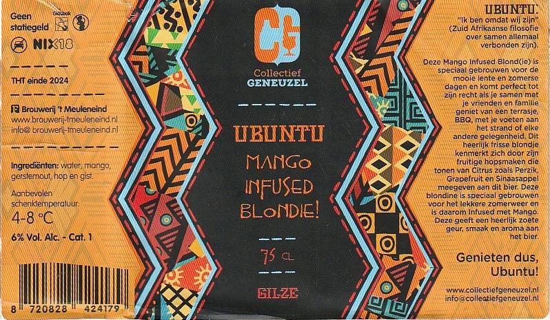 | Biernaam op etiket | Ubuntu Mango Infused Blondie! |