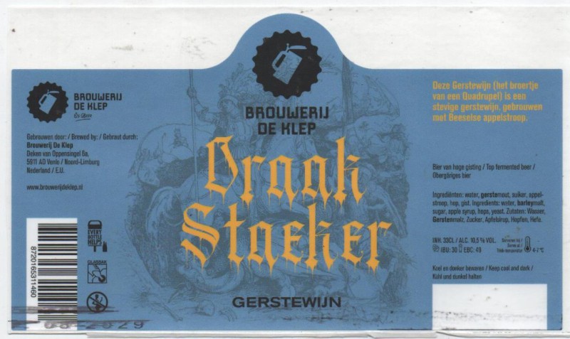 | Biernaam op etiket | Draak Staeker Gerstewijn |