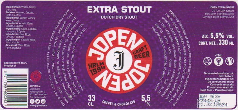 | Biernaam op etiket | Extra Stout Dutch Dry Stout |