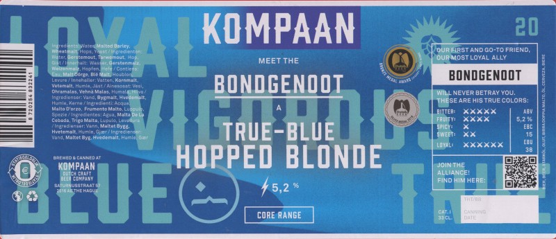 | Biernaam op etiket | Bondgenoot True-Blue Hopped Blonde |