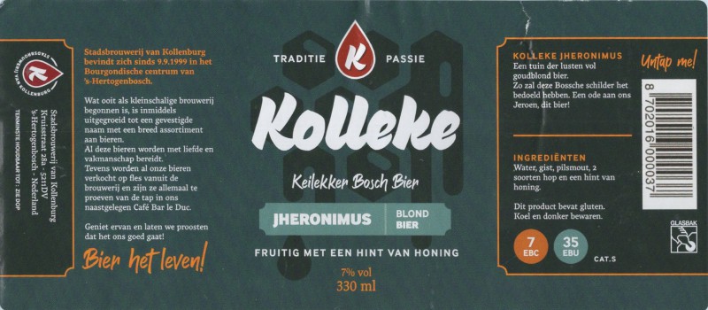 | Biernaam op etiket | Jheronimus Blond bier |