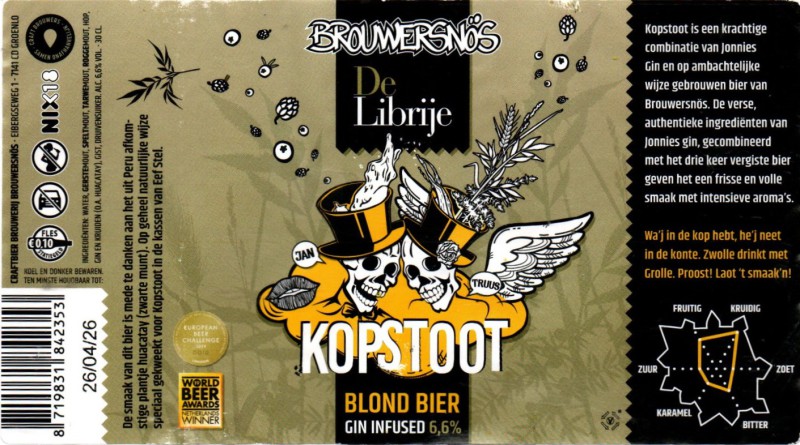 | Biernaam op etiket | Kopstoot Blond Bier Gin Infused |