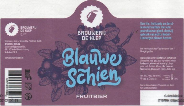 | Biernaam op etiket | Blauwe Schien Fruitbier |