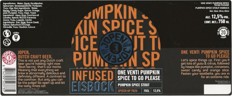 | Omschrijving | Pumpkin Spice Stout infused Eisbock |