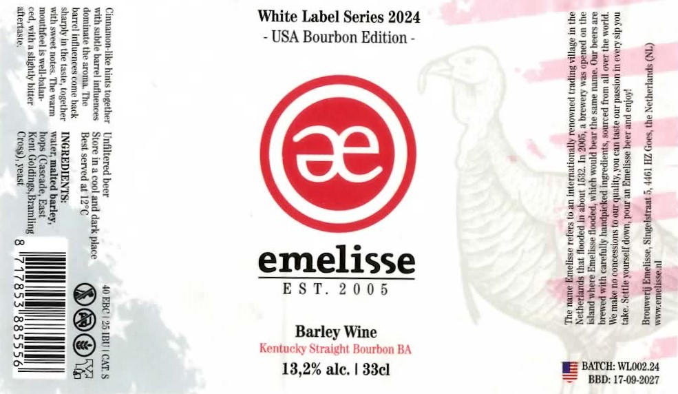 | Biernaam op etiket | White Label Barley Wine Kentucky Straight Bourbon BA |