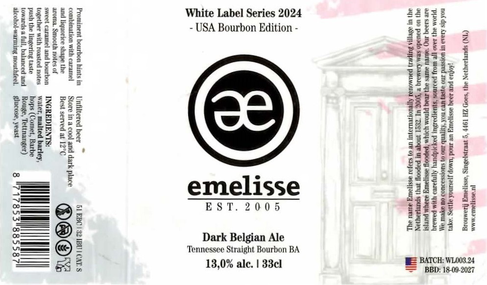 | Biernaam op etiket | White Label Dark Belgian Ale Tennessee Straight Bourbon BA |