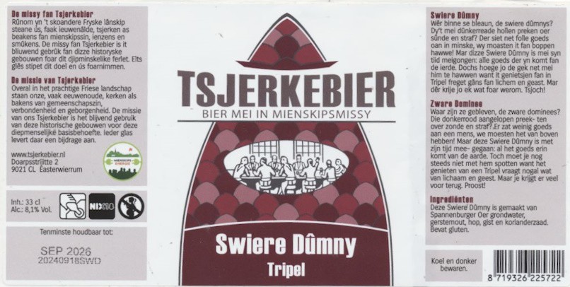 | Biernaam op etiket | Swiere Dûmny Tripel |
