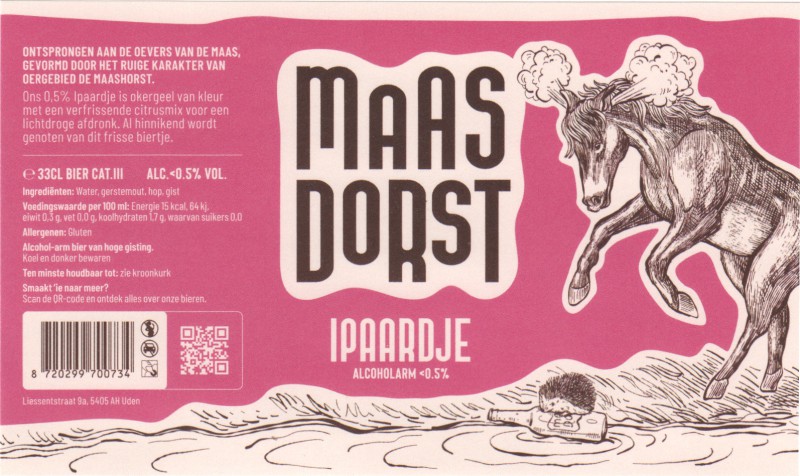 | Biernaam op etiket | Maasdorst Ipaardje Alcoholarm |