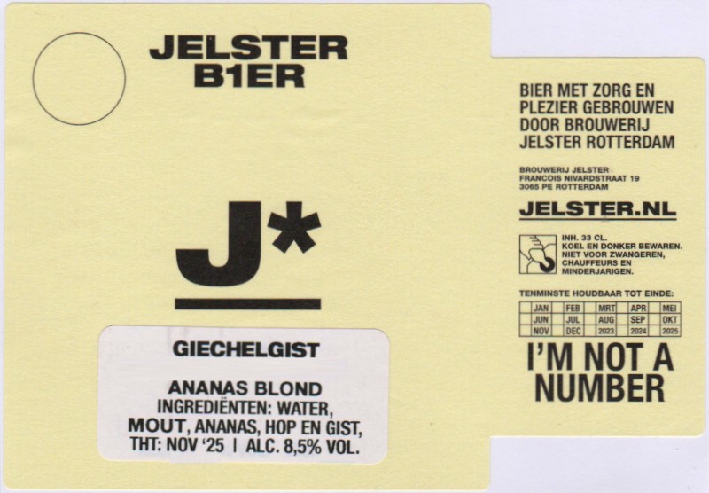 | Biernaam op etiket | J* Giechelgist Ananas Blond |