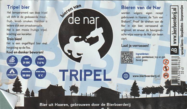 | Biernaam op etiket | De Nar Tripel |