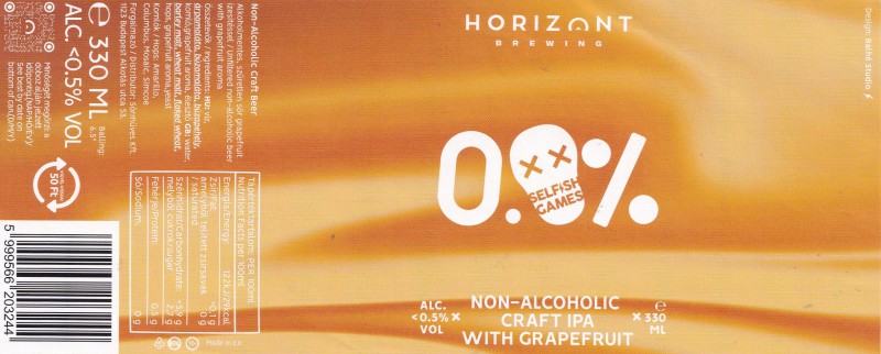 | Omschrijving | Non-Alcoholic 0.0% Selfish Games inhoud links groot geschreven Collab - vandeStreek / Horizont Brewing |