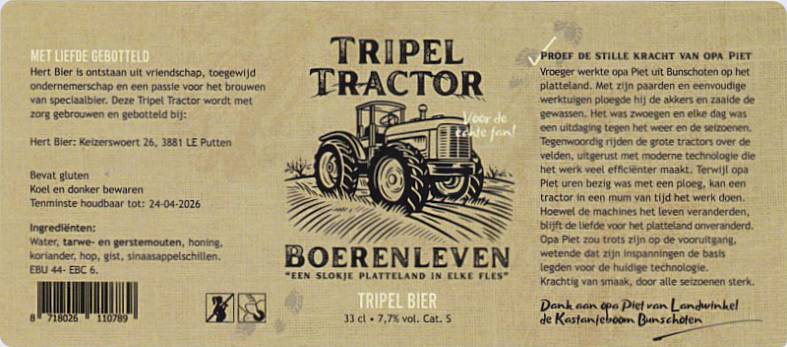 | Biernaam op etiket | Tripel Tractor Boerenleven Tripel Bier |