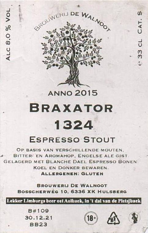 | Biernaam op etiket | Braxator 1324 Espresso Stout |