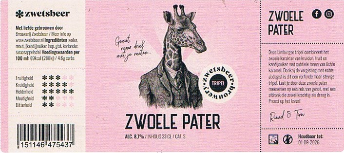 | Biernaam op etiket | Zwoele Pater |