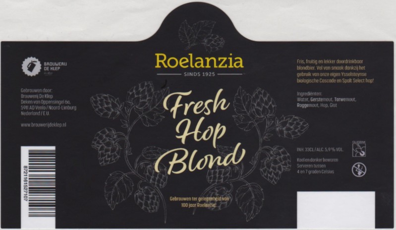 | Biernaam op etiket | Roelanzia Fresh Hop Blond |