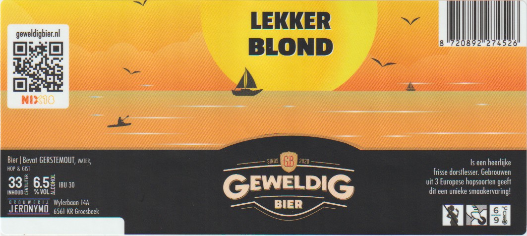 | Biernaam op etiket | Geweldig Bier Lekker Blond |