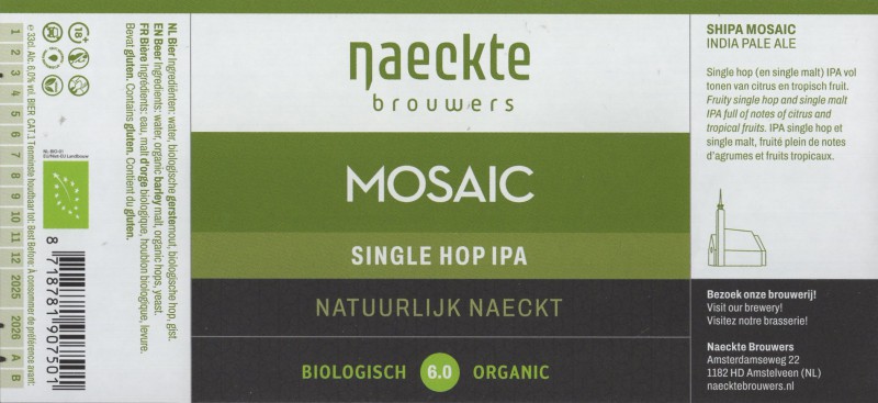 | Biernaam op etiket | Mosaic Single Hop IPA |