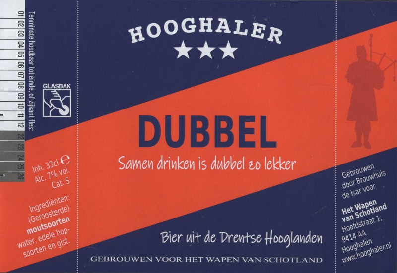 | Biernaam op etiket | Hooghaler Dubbel |
