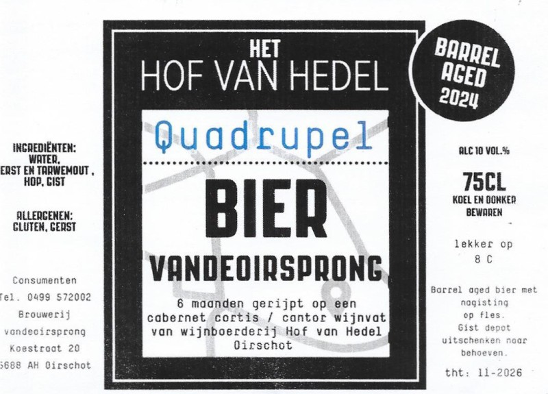 | Biernaam op etiket | Het Hof van Hedel Quadrupel |