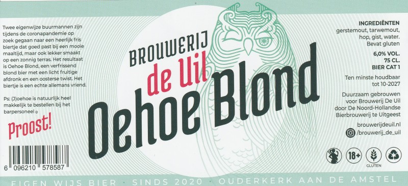 | Biernaam op etiket | Oehoe Blond |