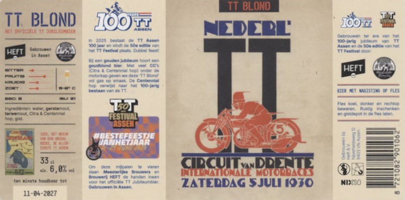 | Omschrijving | Jubileumbier 100 jaar TT en 50e editie TT Festival 5 juli 1930 tht 11-04-2027 Collab - Heft / Meesterlijke Brouwers |