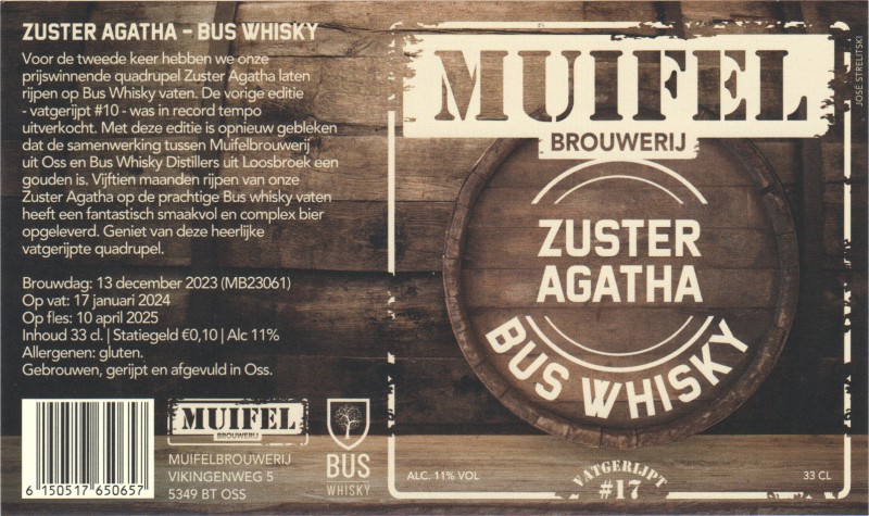 | Biernaam op etiket | Zuster Agatha vatgerijpt #17 Bus Whisky |