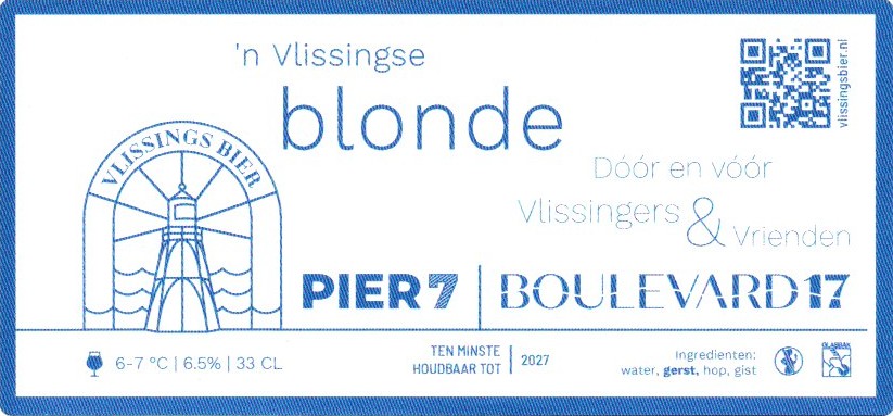 | Biernaam op etiket | 'n Vlissingse Blonde Pier 7 Boulevard 17 |